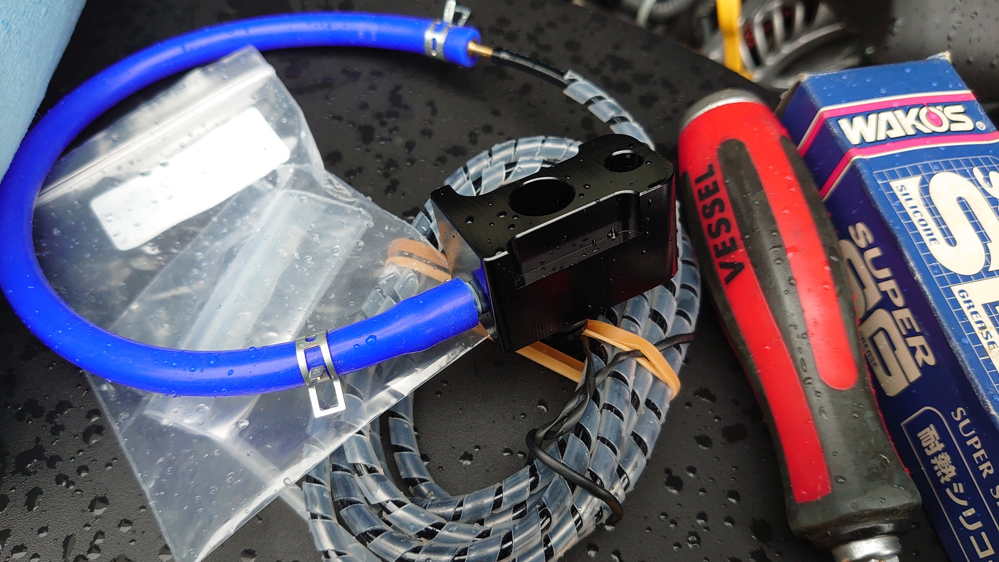 バキュームチューブ通すのにカッターで「十」切り込みを入れたけど、防水という観点ではイマイチ。