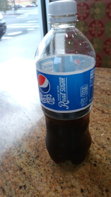 それにしても、レジで追加したペプシ「リアル砂糖」がアピールポイントだし、カロリーが250とか自慢げに書いてあるし、どうなってんだここ・・・