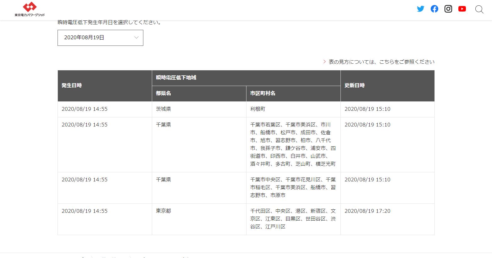 ちょっとしてから東電のページ見たらウチの近所だけじゃなくて広範囲で瞬断したのね。